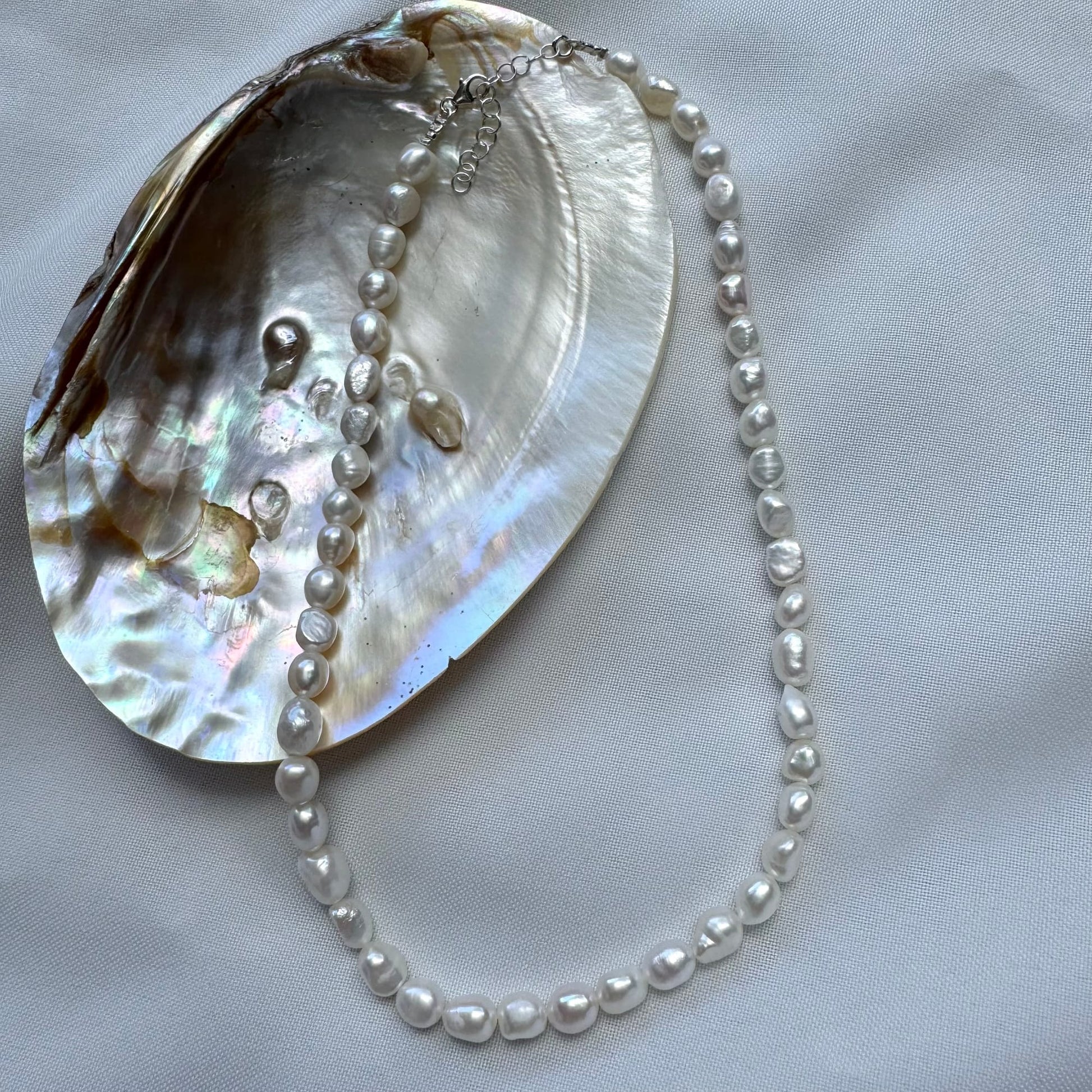 שרשרת אלנה עשויה מפנינים לבנות טבעיות, גדולות ומרשימות – נוטפת סטייל ותשדרג לך כל לוק! גודל פנינים 7-8 מ״מ אורך 38 ס"מ + 5 ס"מ שרשרת הארכה התכשיטים מגיעים ארוזים בקופסת מתנה ועם אחריות לשנה * הפנינים טבעיות וצורתן עלולה להשתנות מאחת לשנייה