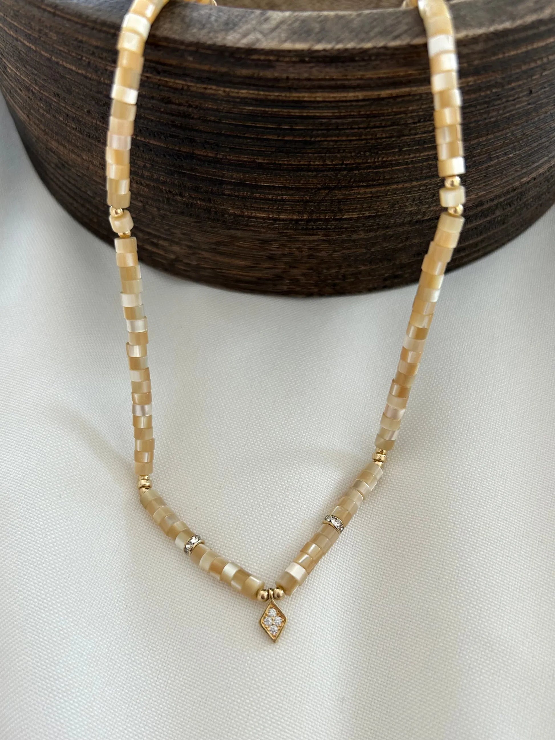 שרשרת לואניה עשויה מאבני אם הפנינה טבעיות ואלמנטים מציפוי זהב 14K אורך 40 ס"מ + 5 ס"מ שרשרת הארכה התכשיטים מגיעים ארוזים בקופסת מתנה ועם אחריות לשנה * הפנינים טבעיות וצורתן עלולה להשתנות מאחת לשנייה